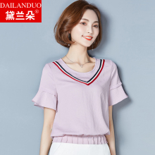 2017夏装新款韩版雪纺衫短袖大码T恤纯色显瘦小衫仙气质上衣女夏