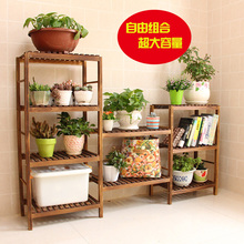多层落地式花架简约大容量客厅置物架子实木质收纳架自由组合