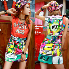 夏季欧美风涂鸦印花连衣裙直筒无袖时尚百搭女宽松街头个性超短裙