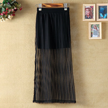 春季侧开叉半身裙雪纺长裙修身包臀纱裙中腰性感透视黑色一步裙