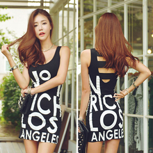 夜店性感露背紧身连衣裙纯棉包臀超短裙夏装女字母无袖低胸背心裙