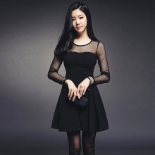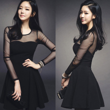 春装性感透视网纱连衣裙春秋季新款百搭a字裙长袖修身显瘦打底裙