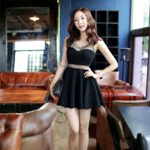 性感透视无袖连衣裙韩版网纱背心裙蕾丝打底裙显瘦港味高腰包臀裙