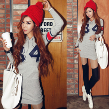 2017春装新款春秋季连衣裙纯棉长袖连帽休闲卫衣裙修身打底包臀裙
