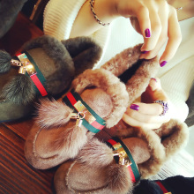 秋冬季新款真皮兔毛乐福鞋女一脚蹬懒人休闲棉鞋复古平底舒适女鞋