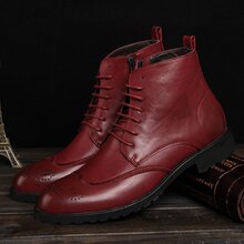 英伦时尚高帮尖头皮鞋子男士长靴皮靴子拉链复古短靴真皮橡胶系带