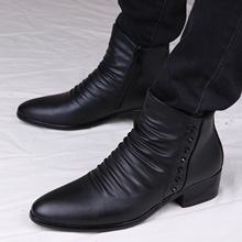 韩版短靴男士尖头皮靴英伦马丁靴男靴春秋高帮皮鞋男内增高男鞋子