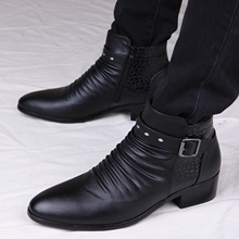 春秋韩版英伦尖头短靴男士皮靴休闲马丁靴男靴内增高帮皮鞋男鞋子