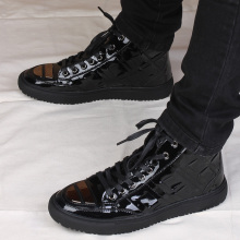 春秋男士系带漆皮短靴皮靴韩版英伦马丁靴男靴高帮男鞋军靴工装靴