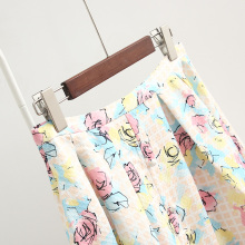 春季新品剪标女装高腰印花纽扣裙中长裙伞裙半身裙C1GF51310潮