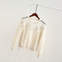 春新款剪标女装蕾丝绣花拼纱显瘦圆领套头长袖雪纺上衣C2CD51106