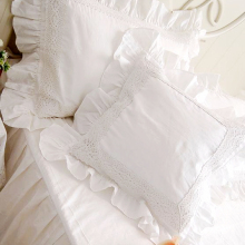 超值新款*荷叶边嵌蕾丝白色贡缎纯棉靠垫套/抱枕套/抱枕