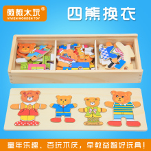 木头小熊换衣服儿童卡通木制早教益智力幼儿园立体拼图玩具1-5岁