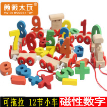 木制小火车小孩子木头磁性数字玩具车儿童认数益智男宝宝算术积木