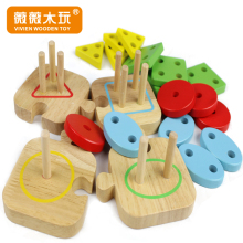 薇薇木玩几何形状幼儿童益智力积木制宝宝四套柱配对玩具3-5周岁