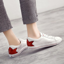女真皮小白鞋2017新款百搭时尚圆头平底单鞋星星透气板鞋休闲鞋