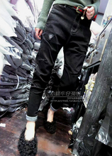 欧洲站吊挡大码加厚黑色宽松显瘦韩版女小脚哈伦裤牛仔裤垮裤802