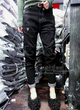 加厚磨毛大码胖M弹力黑色宽松显瘦韩版女小脚哈伦裤牛仔裤垮裤802