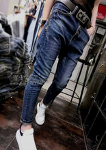 秋韩国版个性破洞补丁宽松小脚牛仔裤垮裤哈伦裤弹性显瘦潮女5851