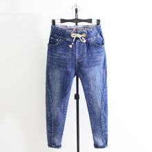 女大码弹力哈伦牛仔长裤宽松萝卜裤加肥加大显瘦学生束脚垮裤胖mm