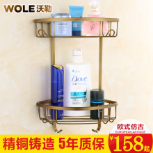 沃勒仿古全铜双层三角架置物篮 浴室置物架壁挂钩 卫生间五金挂件
