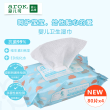 丽家宝贝arok爱儿可婴儿柔湿巾宝宝湿巾屁屁湿巾80片X4包320片