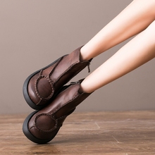 头层牛皮 手工原创拼接设计 厚底坡跟增高短筒女靴鞋子 春秋新款