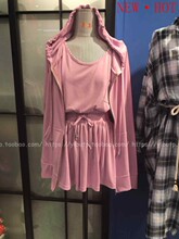 伊布 韩国东大门代购17春款 垂感棉质连帽卫衣背心短裤套装三件套
