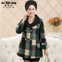 中老年毛呢外套女中长款秋冬装妈妈装外套尼外套格子大码上衣清仓