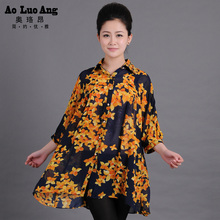 中年大码衬衣女胖mm 中长款加肥加大雪纺衫宽松200斤印花开衫衬衫