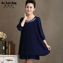 妈妈装连衣裙40-50夏中老年女装夏装中袖雪纺裙宽松褶皱裙