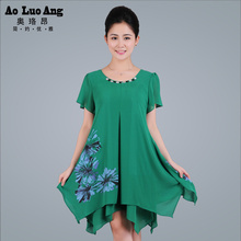 中老年连衣裙大码雪纺裙中长款中年女装加肥加大母亲节妈妈装短袖