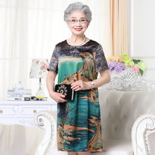 老人衣服女夏装60-70岁奶奶装短袖连衣裙妈妈时尚印花中长款裙薄