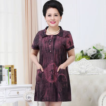 奶奶夏装50-60岁中老年女装连衣裙妈妈装中长款中袖中年人女士裙