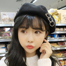 韩国新款个性铁环画家帽子女秋冬季潮英伦风甜美可爱贝雷帽原宿风