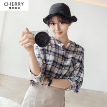 韩版寸衬衣格格衬衫女长袖宽松甜美百搭清新复古格子小清新学生bf