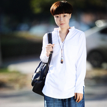 飘异第2个清晨 文艺半开小立领宽松百搭竹节棉长袖T恤百搭打底衫