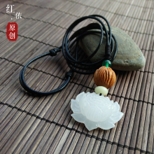 复古森女 手工原创白玉雕刻莲花菩提文艺小清新范项链 禅意挂链
