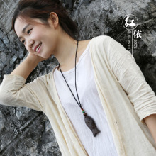 民族风项链挂饰复古原创设计木鱼长款女毛衣链木质百搭棉麻配饰品
