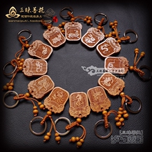 桃木十二生肖守护神普贤菩萨本命佛钥匙链男女挂件挂件汽车钥匙扣