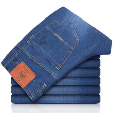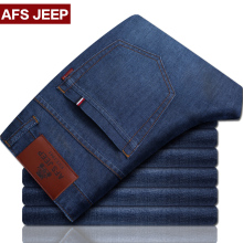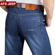 战地吉普春季弹力牛仔裤男青年商务直筒修身宽松大码男裤夏季薄款