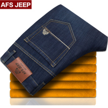 Afs Jeep/战地吉普冬季加绒牛仔裤男直筒宽松中年加绒加厚保暖裤
