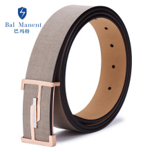 巴玛特时尚平滑扣男士皮带腰带男不锈钢防过敏韩版潮流纯牛皮真皮