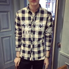 春秋季格子衬衫男士长袖衬衫韩版修身青少年外套免烫休闲衬衣寸衣