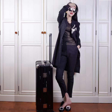欧洲站2017女装春新款潮品街头范气质中长款显瘦修身西服两件套