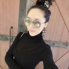 欧洲站2017年春季新款时尚潮女螺纹弹力纯色针织衫网拼接打底上衣