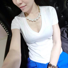 欧洲站春季新款女装V领丝棉2017年春季常规打底百搭街头白色T恤