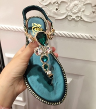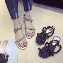 17夏季新款 线缝水钻亮片脚脖系带套趾平底休闲女凉鞋