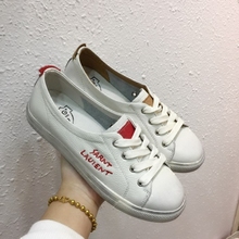 17夏季新款 IG正品头层牛皮真皮绣字侧边休闲小脏鞋橡胶平底女鞋
