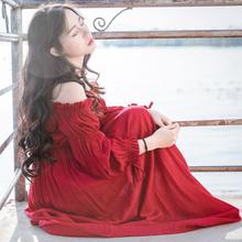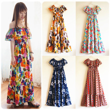 2017夏波西米亚文艺复古一字领棉麻连衣裙性感露肩度假沙滩裙长裙